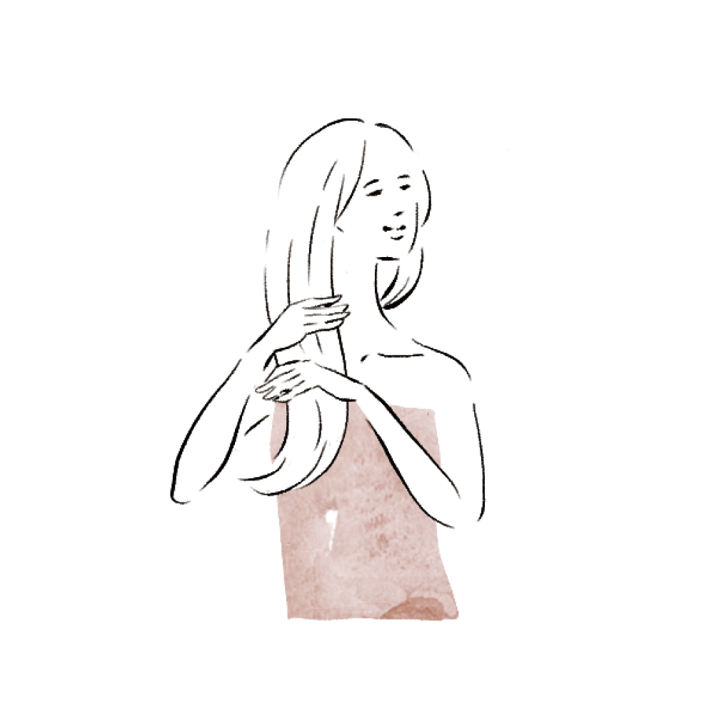 シャンプー後のトリートメントで、“毛先のケア”を。コンディショナーと違い、トリートメントは髪の内部まで補修します。水分を切って、ダメージを受けた毛先を中心に揉み込みましょう。ケア成分の浸透・定着がぐんと上がります。